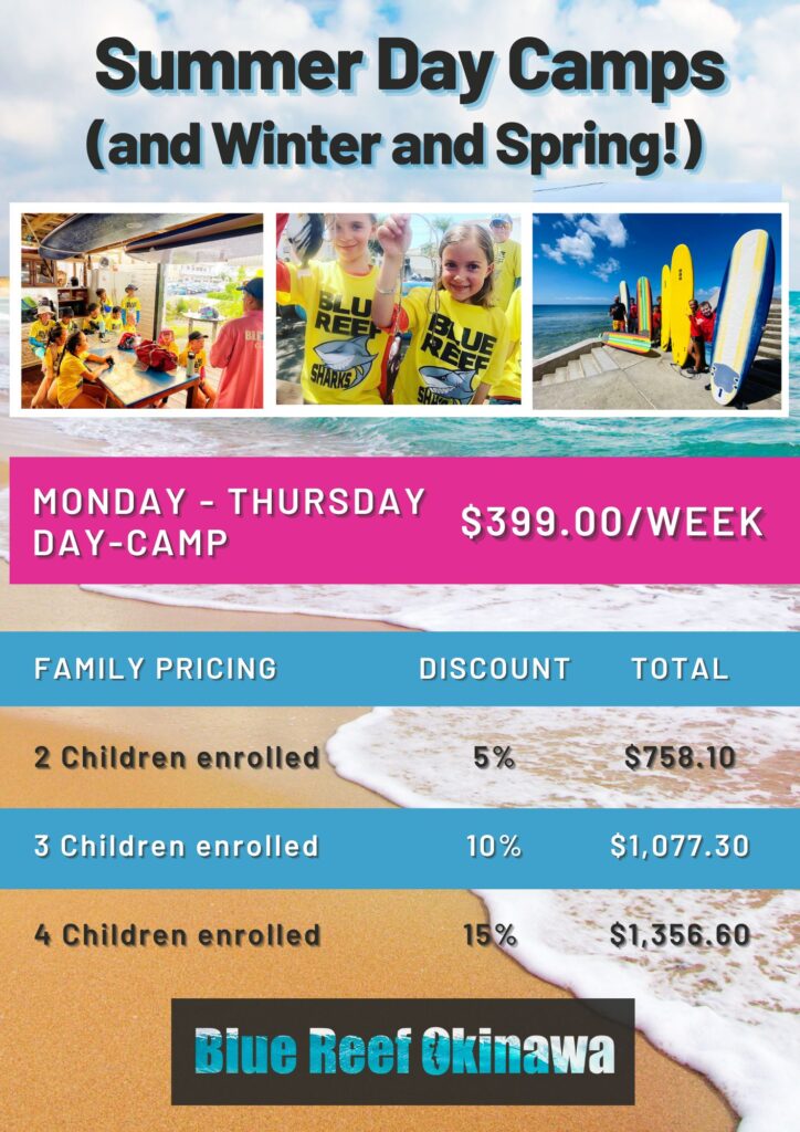Drop off and pick up for Blue Reef Day Camps (unless otherwise notified) is at 800am and 1500pm at Sunabe Baba Beach Park HERE